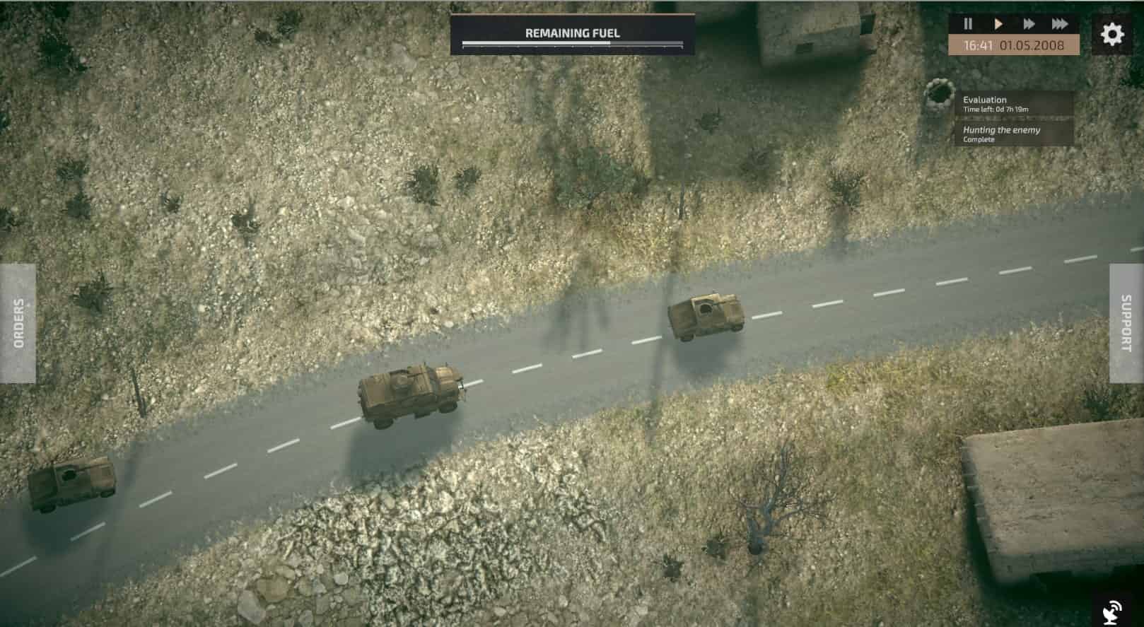 - Due prospettive di gioco: satellite (gestione) e drone (tattico): il gioco è diviso in due livelli: tattico, con l’aiuto di droni e strategico, con la vista satellitare, utile a gestire forze e l’equipaggiamento.