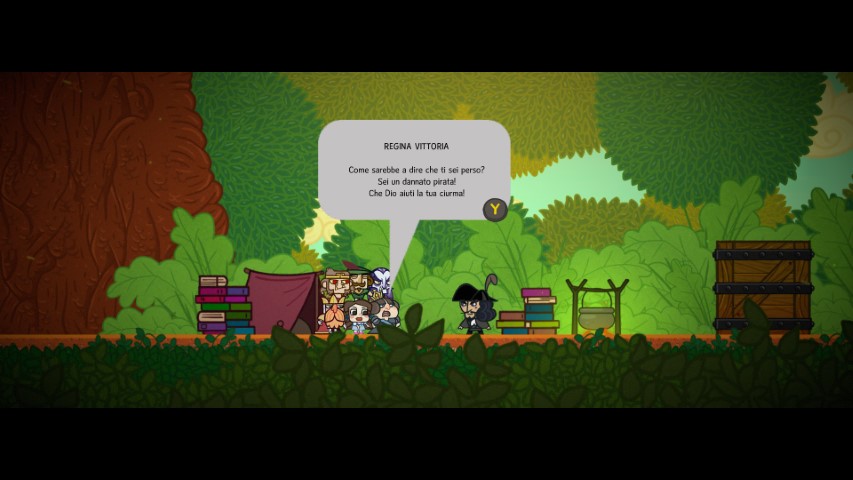 Per farlo dovranno affrontare un’avventura strampalata che mischia tante ambientazioni, periodi storici e personaggi famosi. E lo fa in un filo conduttore divertente e strampalato anche nei dialoghi. Spesso e volentieri, infatti, leggeremo battute tra i numerosi personaggi e l’ironia è sempre dietro l’angolo accentuata anche da un aspetto caricaturale dei personaggi e dell’ambientazione frutto di un’ispirata direzione artistica.