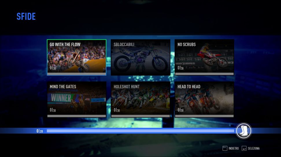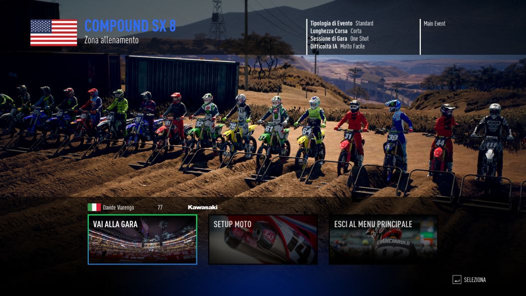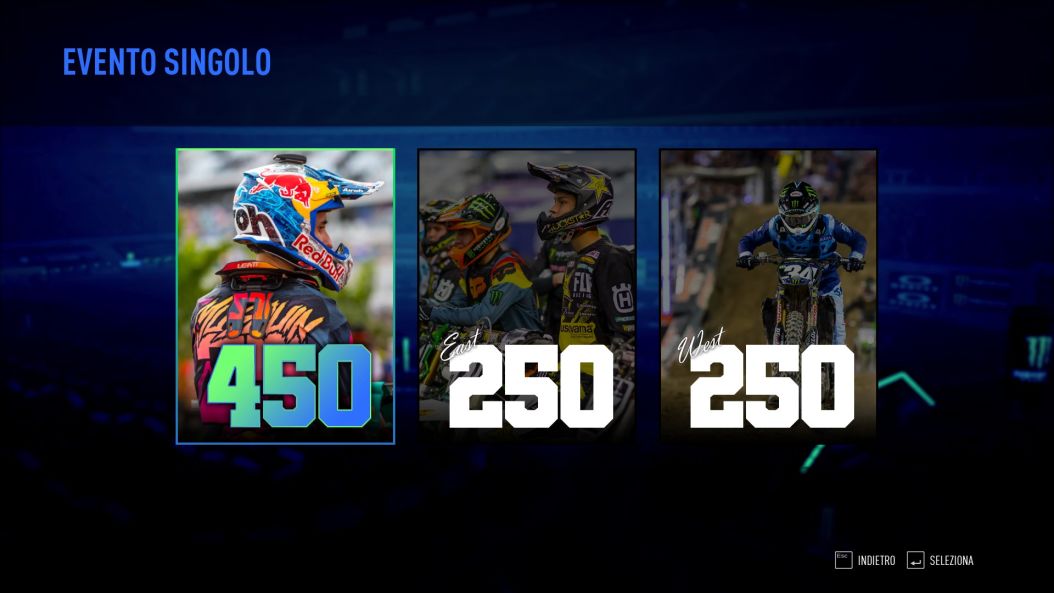 Non vi è una vastissima scelta tra caratteristiche del volto, tatuaggi ecc, ma per un avatar che per il 99% del tempo indosserà un casco, la cosa certamente non può finire col pesare. Ben maggiori sono viceversa le opzioni di personalizzazione a livello di colori e livrea della “tuta”, oltre che della marca e modello di moto. Il fulcro del gioco e in generale della competizione, che in questa sede comprende fedelmente gli oltre 100 piloti ufficiali sui loro bolidi a due ruote, divisi (a seconda della cilindrata) nella categoria principale 450SX e in quella 250SX, suddivisa a sua volta nelle sottocategorie “East” e “West”. Una volta creato il proprio personaggio si dispiegano le tante possibilità offerte dal titolo.