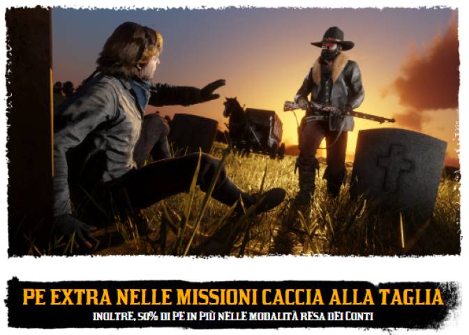 Anche chi desidera mettersi alla prova sfidando altri pistoleri nelle modalità Resa dei conti riceverà il 50% di PE in più per tutta la settimana. Alleatevi con una squadra di grilletti facili nella serie in evidenza della settimana: Corsa alle armi a squadre. Fatevi strada in un campo di battaglia sempre più piccolo pieno di cavalli, armi e corazze e scatenati in una lotta all’ultimo sangue. Inoltre, questa settimana potete ricevere il 50% di PE extra in tutte le Gare.