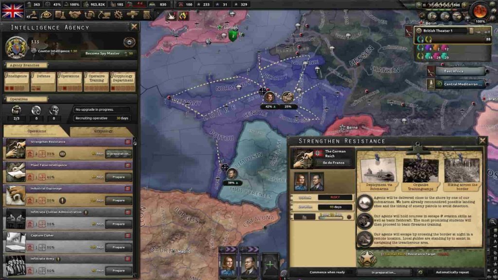 - Aiutare la resistenza: i propri agenti potranno essere impiegati per aiutare i movimenti rivoluzionari alleati, fornendogli ciò di cui avranno bisogno per danneggiare il nemico.