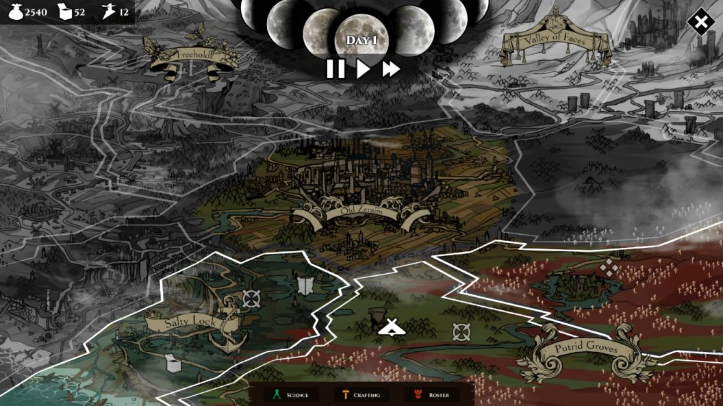 Nel più classico dei canoni dei moderni strategici a turni, muoversi per la mappa consumerà risorse di vario tipo, che dovremo ristockare rifornendoci da vari vendor sparsi per la mappa di gioco o semplicemente attendere che aumentino naturalmente. È bene sottolineare che, tendenzialmente, affrontare a viso aperto gli stage di combattimento e concreta esplorazione, sarà 9 volte su 10 una scelta errata: Alders’s Blood punta moltissimo sull’esplorazione in stealth.