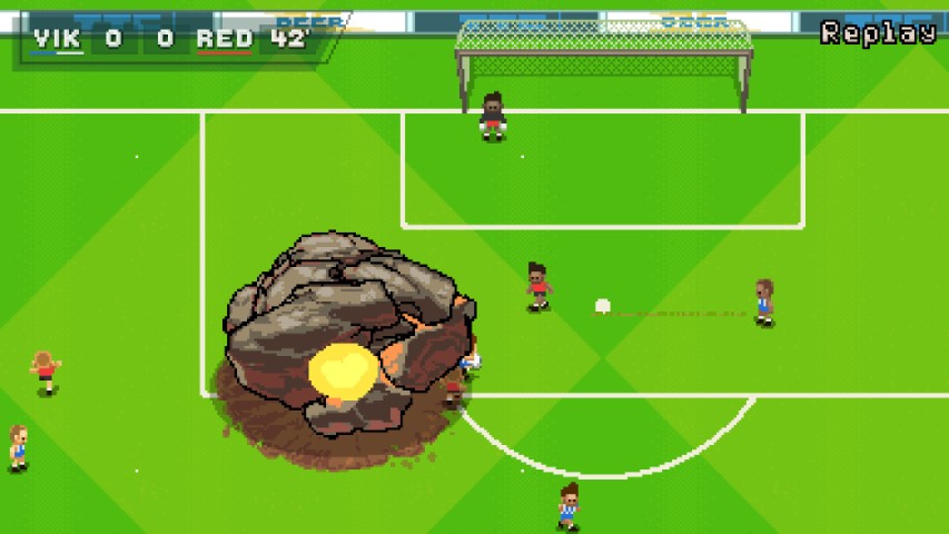I contenuti al momento sono ridotti all’osso. Si può scegliere se giocare la partita singola e solo due squadre, quella che gioca in casa (i Viking) e quella in trasferta (i Red) o se giocare online con altri giocatori.