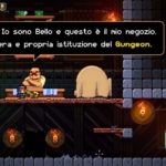 A dover essere raccolti e collezionati all’interno del Diginomicon sono invece i vari oggetti che fungono da potenziamento per il gungeonista. Più cuori di vita, proiettili più grassi (e quindi più grandi e potenti), e tantissimi altri buff; i rispettivi oggetti potranno essere ottenuti tramite drop dei boss, trovati in alcune stanze-dungeon o acquistati tramite il negozio di Bello, a cui si potrà accedere più volte nel corso dell’evasione dal gungeon, verso l’esterno. A completare l’equipaggiamento ci saranno delle “smart bomb”, che potranno essere trasportate in un limite di due, e che consentiranno tramite la pressione di un tasto di sgombrare l’intero schermo, seppur momentaneamente, da tutti i proiettili nemici. Utile per rifiatare un paio di secondi durante le fasi più concitate, ma da utilizzare con parsimonia.