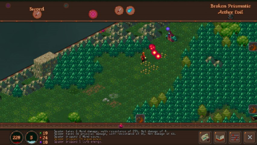 È vero che anche i roguelike più “hardcore” offrono ben poche opzioni e comodità, ma la gestione del proprio equipaggiamento e le informazioni circa gli oggetti trovati in giro per i dungeon sono una consuetudine naturale. Se non una vera e propria scheda del personaggio, almeno la possibilità di valutare gli equipaggiamenti prima di fare un viaggio “a vuoto” dovrebbe essere garantita.