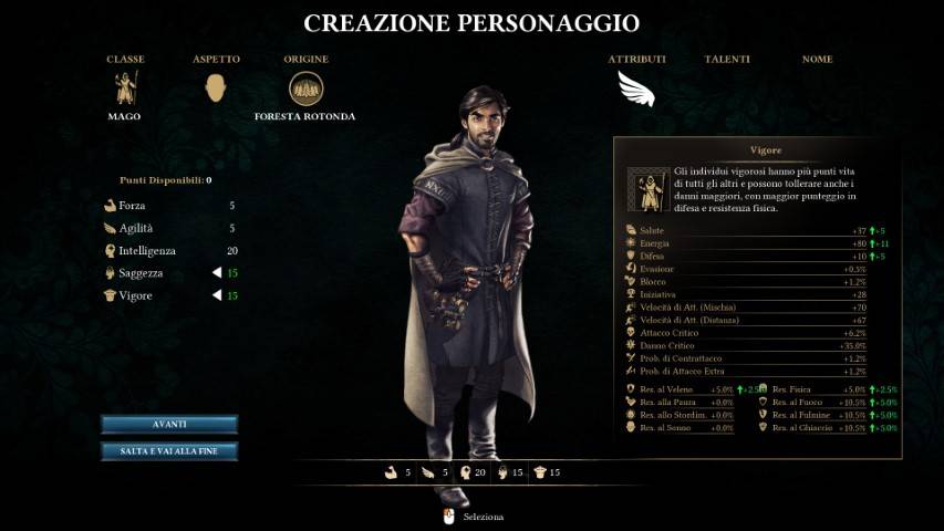 Ogni classe ha le sue affinità, pertanto per la classe del mago puntare su saggezza e intelligenza si rivelerà una scelta quasi obbligata. Non potremo agire sul resto del party, ha già background e classe definiti. Quello su cui potremo intervenire sono le abilità, che potremo personalizzare al passaggio di livello.
