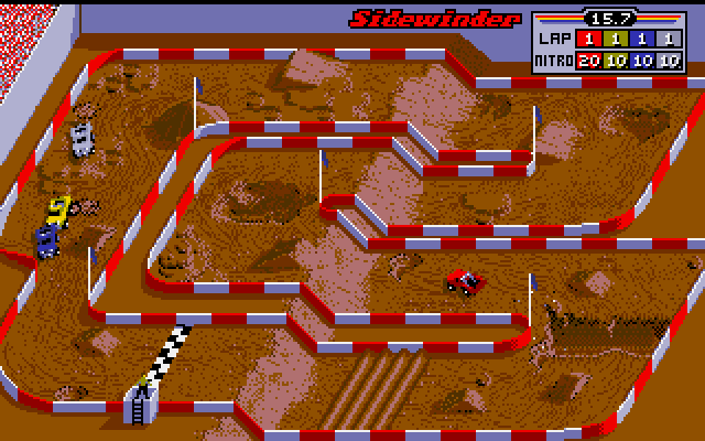 Si guidano dei pick-up su circuiti ricavati in arene con visuale isometrica dall’alto in gare frenetiche dove è possibile raccogliere nitroglicerina per dare accelerazioni decisive o bonus per altre componenti del mezzo. Non finisce certamente qui. Il ritmo è elevatissimo e la fisica rende il gameplay divertente. Ed è proprio questo che lo fa ricordare agli appassionati di retro racing games.