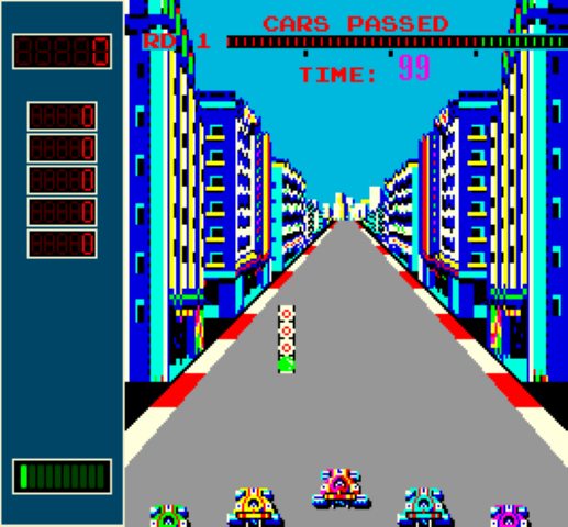 Per passare allo stage successivo il giocatore deve superare almeno 30 avversari. Già notevole l’intelligenza artificiale: con vetture facili da sorpassare ed altre che sfrecciano all’improvviso. Nel primo stage, il giocatore ha vite illimitate ma successivamente si hanno solo tre possibilità e si riceve un’auto successiva (fino ad un massimo di quattro) per ogni round completato. A complicare il tutto anche un’ambulanza che di tanto in tanto percorre la nostra strada segnalata dall’immancabile bandiera gialla.
