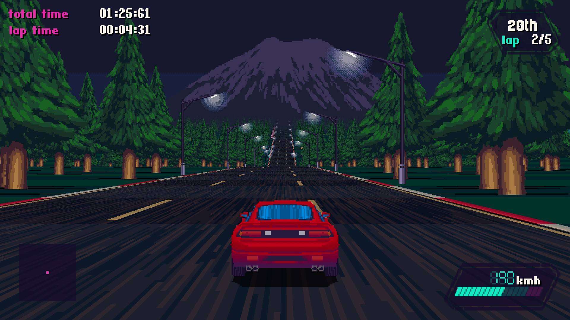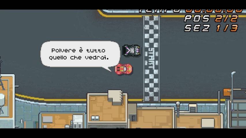Grafica in pixel art con tantissimi piccoli tocchi di classe aumentano il feeling con la sensazione retro. Ottimo il gameplay locale con schermo condiviso fino a quattro persone. Anche il titolo della software house siculo-britannica si presta bene a ricordare diversi retro racing games.