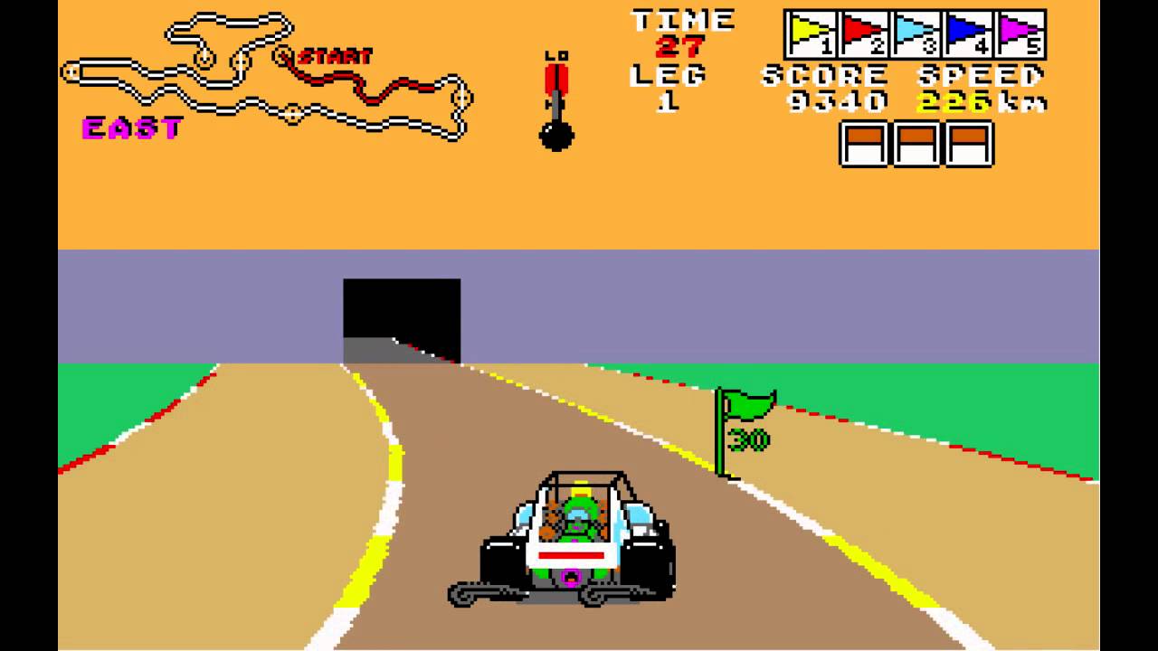 Io avrei anche citato TX-1 del 1983, l’ora dimenticato precursore di Buggy Boy – il cui usa un hardware simile, creato dalla massiva task force Namco+tatsumi+Atari che usava tre schermi – primo gioco che ricordo – alta risoluzione ed aveva un sistema di bivi simile ad Out Run