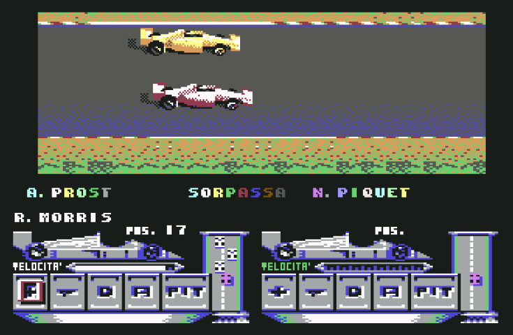Apprezzabile la versione C64. Ricca di tante opzioni dove – in base al budget – si doveva allestire un team di tecnici, meccanici ma anche scegliere i materiali con i quali realizzare la monoposto. Telaio, stile degli alettoni, cilindri del motore (da 8 a 12) e così via. Il giocatore poteva, dopo aver assemblato la vettura, immergersi nel Mondiale di F1 e poteva anche guidare personalmente nelle prove tentando di staccare il tempo migliore o, quantomeno, un crono decente in vista della gara.