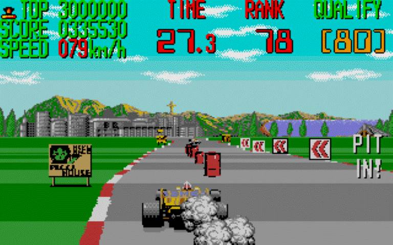 In sala giochi fu un vero successo con un cabinato che aveva la forma della monoposto, pedaliera e volante con cambio a farfalla (sullo sterzo in pratica) con possibilità anche di cambiare visuale con telecamere dall’alto, in terza persona o direttamente dal cockpit. Essendo un arcade il gameplay era piuttosto immediato ed ovviamente basato sul tempo. Ogni tracciato (ve ne erano tre) era suddiviso in segmenti e quindi si dovevano superare entro i limiti. Memorabile. Fedelissima la versione Switch uscita lo scorso anno. Uno dei retro racing games arcade più amati di sempre.