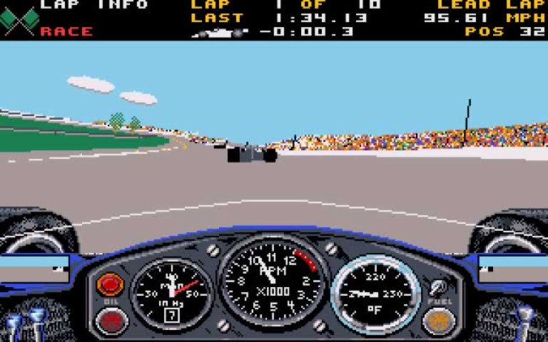 Tornando a noi, Indianapolis 500: The Simulation offre una visuale in prima persona facendoci immergere nell’abitacolo della monoposto con una grafica poligonale ancora acerba ma promettente. Troviamo anche la possibilità di salvare replay per un massimo di 20 secondi, cinque telecamere diverse più una in caso di incidente. La CPU teneva conto dei danni delle auto degli altri piloti ed era molto reattiva alle varie impostazioni selezionate.