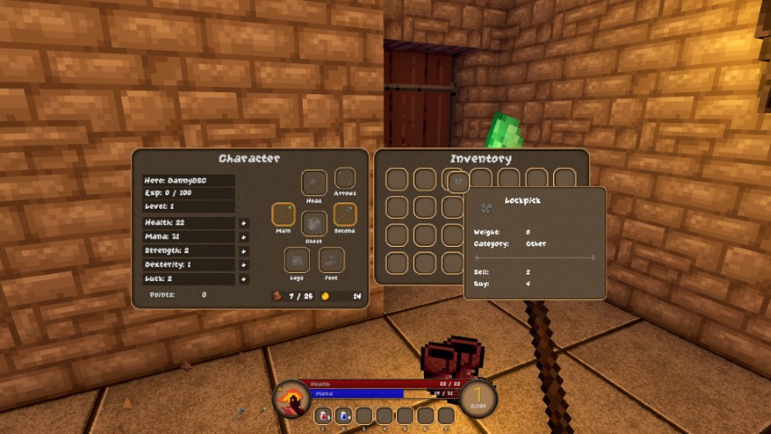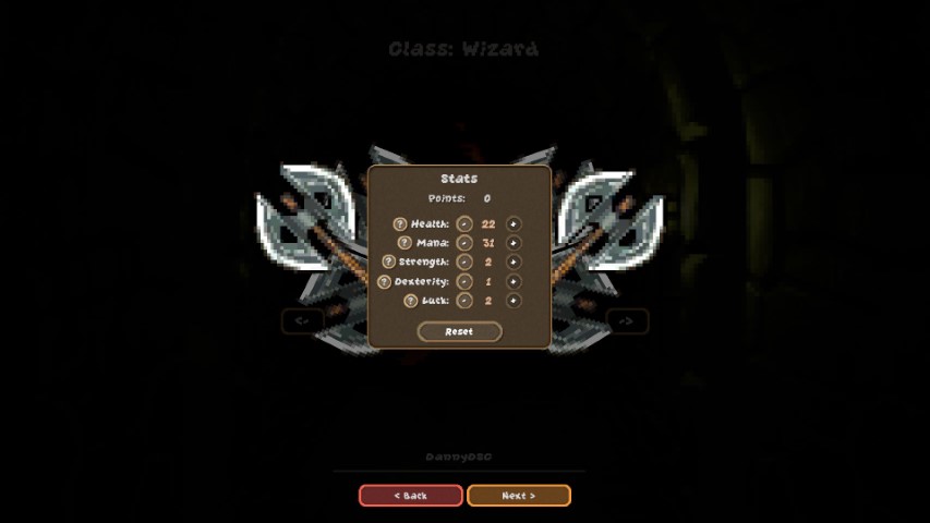 La salute determinerà i punti vita del personaggio, mentre forza e destrezza il danno da corpo a corpo e a distanza. Notiamo subito che manca un valore relativo all’intelligenza o alla saggezza, che dovrebbe andare ad aumentare i danni magici. Archi e staffe hanno danni simili, pertanto il mago risulta la classe più svantaggiata del gioco. Il valore di fortuna andrà a determinare la casualità di trovare loot lasciato dai mostri, o nelle botti.