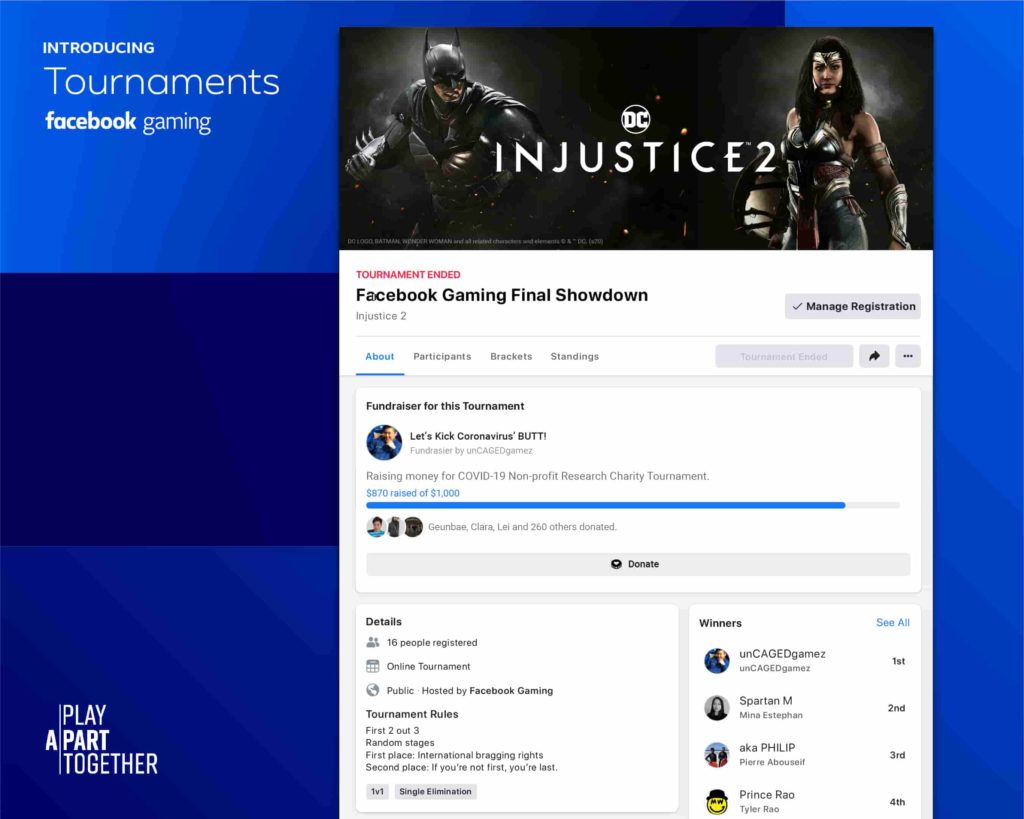 Inoltre, grazie a Tornei di Facebook Gaming, creator e broadcaster possono ospitare tornei di fan e allo stesso tempo trasmettere in live streaming. In un unico luogo, è possibile organizzare, partecipare o semplicemente guardare le azioni di gioco. Grazie agli strumenti di raccolta fondi che possono essere integrati nei video di gioco, i creator possono anche organizzare tornei per supportare cause benefiche. Quest’ultimo fattore ad oggi risulta essere decisamente rilevante vista la situazione attuale. Tutto il ricavato quindi sarà devoluto per combattere e sconfiggere il coronavirus. Trattasi di un’iniziativa molto interessante questa di Facebook che permetterà di fare beneficenza e alla società di Zuckerberg di diminuire il gap con altre piattaforme di streaming come Twitch, che ad oggi sembra irraggiungibile.