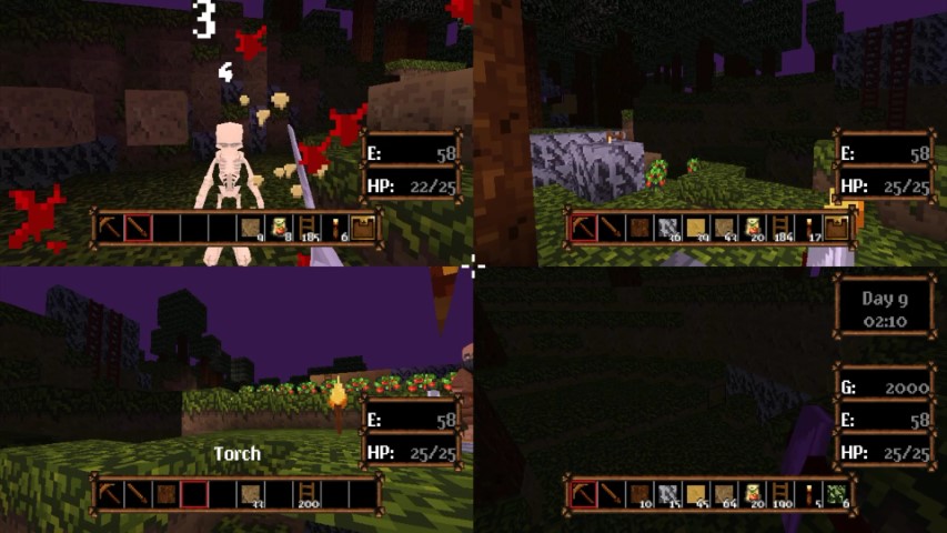Esiste un sistema di livellamento quando battete i mostri, quindi potete equipaggiare oggetti migliori ed esplorare ulteriormente (o più in profondità). Ad ogni nuovo livello vi verranno assegnati 5 punti abilità che potete distribuire liberamente nelle tue statistiche. Competenze e incantesimi sono presenti nella tabella di marcia. Alcuni esempi di abilità magiche che potrebbero arrivare: volare, arrampicarsi, creare ponti magici, teletrasportarsi, resistenza infinita, creare tunnel ed altro.