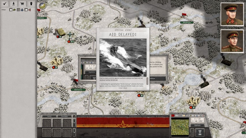 A livello gameplay, questi armamenti saranno disponibili solo se il giocatore sbloccherà le varie opzioni relative al loro acquisto tramite le ricerche. È possibile giocare l’intera campagna senza avvalersi di questa caratteristica. Ed in tal caso nel menu relativo agli approvvigionamenti appariranno mezzi e truppe relative alla sola URSS.