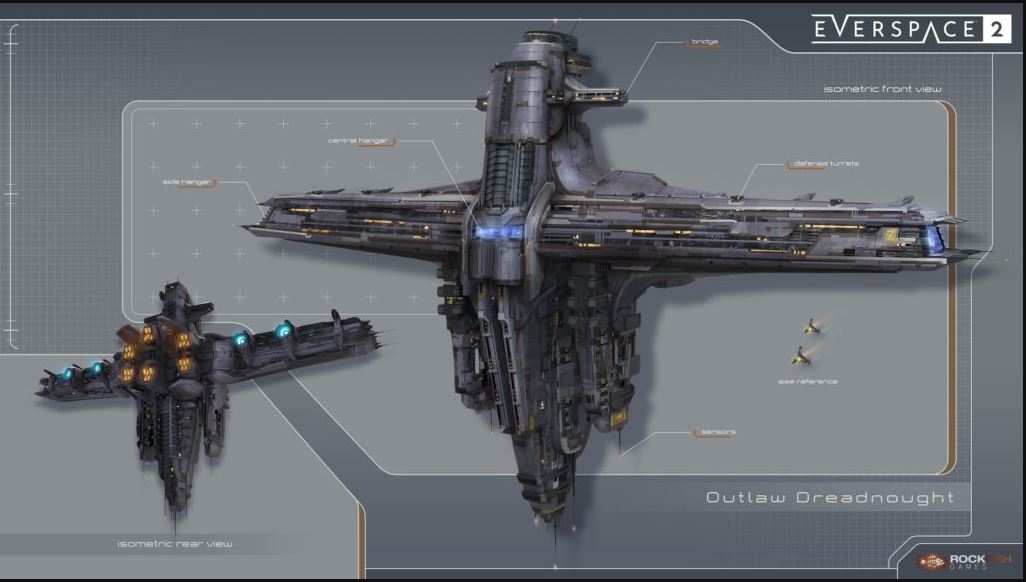 Armata fino ai denti e pesantemente placcat, la Outlaw Dreadnought è la nave capitale dei Fuorilegge in stile fregata. A causa della sua enorme armatura, è quasi impossibile danneggiarla pesantemente da lontano. I piloti devono schivare il suo rilascio ad alta frequenza di bombe a botte e terrificanti torrette al plasma. Per trovare un punto debole bisogna infatti entrare dentro, ed eliminare con un colpo critico il nucleo centrale, per poi fuggire senza essere coinvolti nell’esplosione.