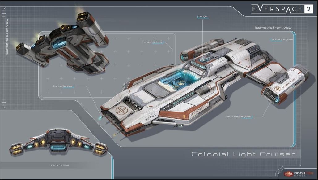In Everspace 2 tutte le navi del giocatore si basano su un sistema di componenti modulare. Esso consente un gran numero di diverse combinazioni di scafi, ali, motori anteriori/posteriori,e accessori vari. Per evitare di avere solo un gruppo di navi dall’aspetto generico, gli sviluppatori hanno cercato di definire regole di progettazione distintive per le classi di navi principali e secondarie, nonché per tutti i componenti della nave. Questo per poter facilmente identificare la classe di appartenenza di una singola nave.