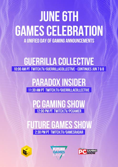 Si inizierà con un’intera giornata dedicata alle notizie e agli annunci di gioco: le premiere di Guerrilla Collective, The PC Gaming Show e Future Games Show.