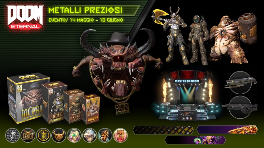 - Serie evento 3 – Oggi in DOOM Eternal prende il via la Serie evento 3, intitolata Metalli Preziosi, che offre la possibilità di ottenere nuovi fantastici oggetti estetici tra cui la Collezione Master Dolorapper. Per cominciare subito a ottenere PE e progredire nell’evento, non dovete far altro che giocare alla Battlemode o alla campagna, oppure completare le sfide settimanali.