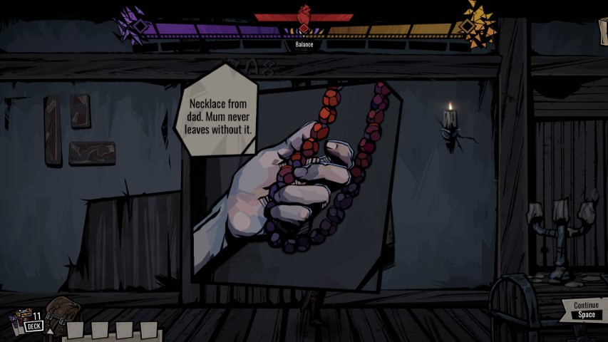 Anche in questo caso l’andamento dello scontro sarà “accompagnato” dalla barra dei sentimenti, o forse – a questo punto – è meglio definire barra della sanità mentale in stile Darkest Dungeon.