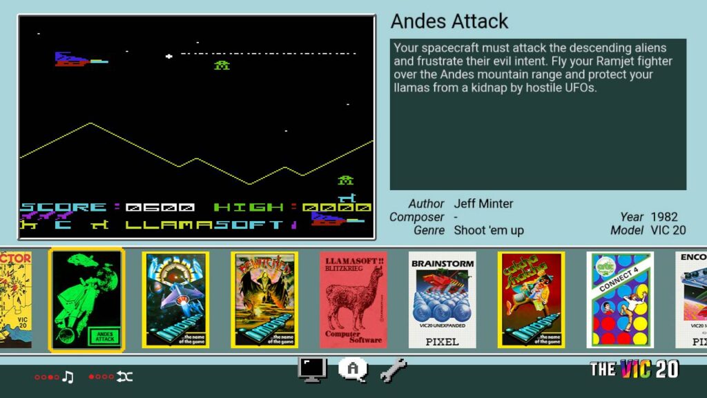 Oltre alle classiche modalità BASIC VIC-20 e C64, i 64 giochi preinstallati includono classici dei due computer come Arcadia e Laser Zone (VIC-20), California Games, Paradroid e Boulder Dash (C64); più tutte le nuove aggiunte come Metagalactic Llamas, Subspace Striker, Mega Vault e Gridrunner (VIC-20); insieme allo sparatutto pubblicato recentemente Galencia (C64) e l’avventura classica Planet of Death (C64) per farti rivivere i giorni di gloria dei veri giochi da tastiera.
