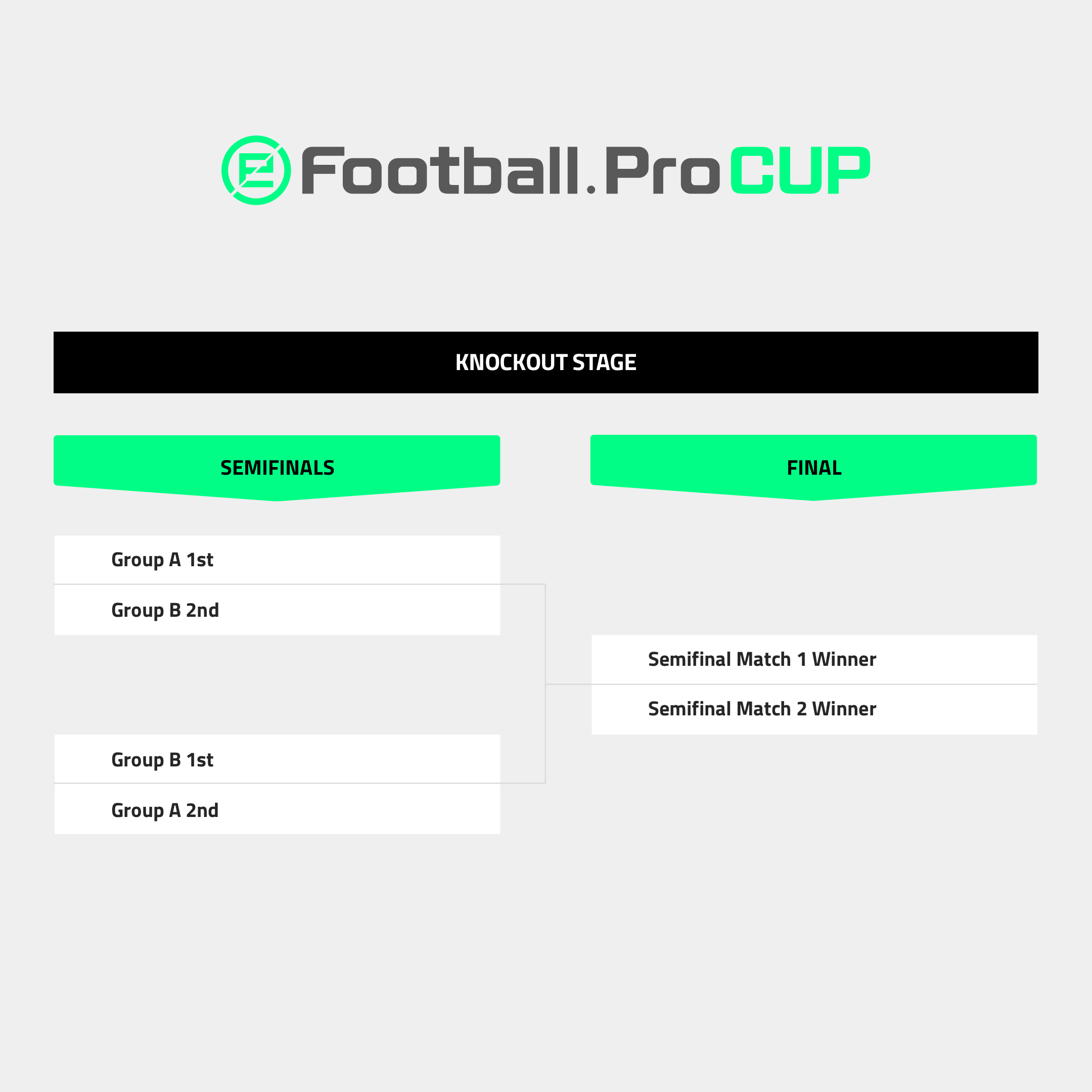 Le semifinali si giocheranno con la formula andata/ritorno, in caso di parità si disputeranno i tempi supplementari e (nel caso di ulteriore parità) i rigori. La finale della eFootball.Pro Cup si giocherà con le stesse regole ma in una singola partita.
