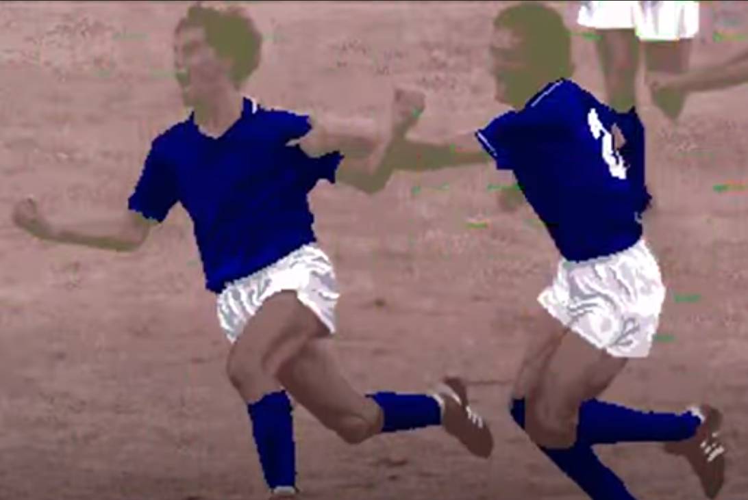 Questa immagine appare in una delle schermate per festeggiare una vittoria in Football Champ. Ovviamente Taito modificò la scena digitalizzandola ed adattando i colori delle varie maglie delle nazionali presenti. E vedere Tardelli con la maglia verde oro del Brasile o arancione dell’Olanda fa un certo effetto. Ma tant’è.