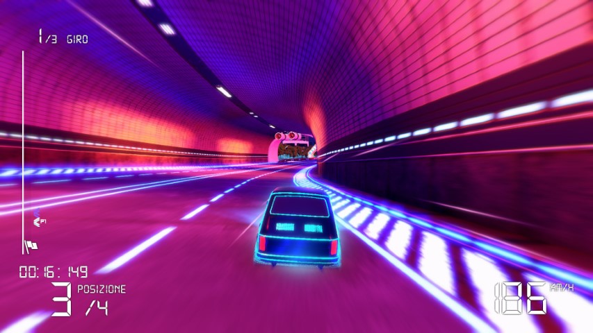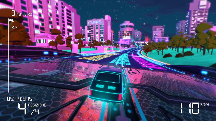 Ambientazione particolare e, a suo modo, originale. Grafica al “Neon” con uno stile simil low poly gradevole. Gameplay di stampo Arcade molto ben fatto. Divertente. Trasuda passione.