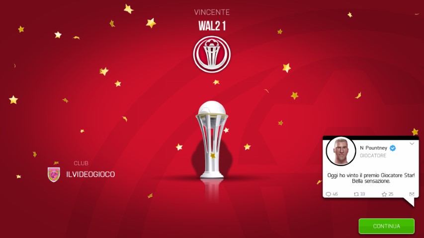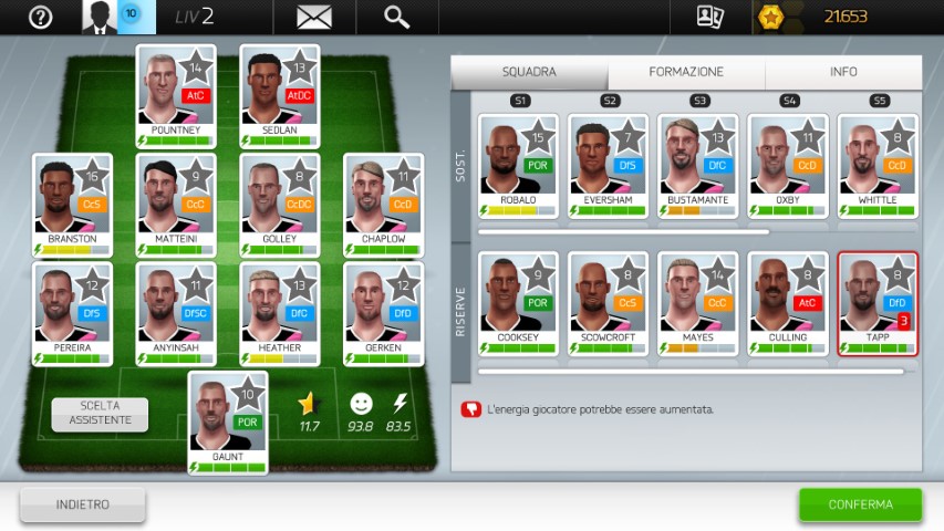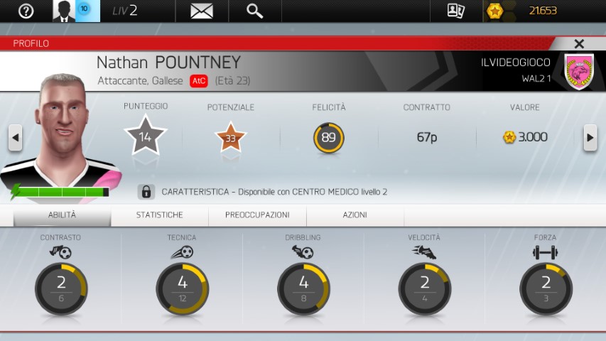 Queste servono, dobbiamo capire l’ambiente reale. Optiamo per due partite. Affrontiamo una squadra di un altro girone della serie cadetta gallese ed una che milita in serie A, le vinciamo tutte e due, ma quella con il team di massima serie la stravinciamo per 4-0. Ma non è tutto rosa e fiori: si infortunano due giocatori. Uno di loro, naturalmente, discreto dall’alto del suo 12 di punteggio globale. E non abbiamo ancora un centro medico per poterli curare. Dobbiamo aspettare il decorso naturale dell’infortunio. Per fortuna nulla di grave.