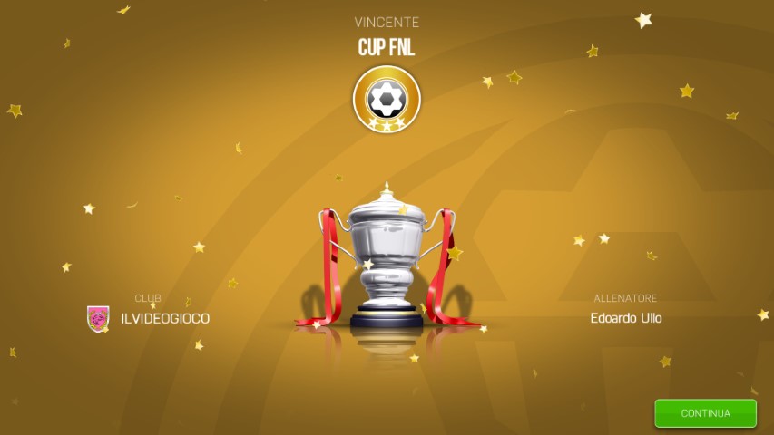 La semifinale non è difficilissima e la vinciamo con una certa autorità: 2-0 in casa. Un gol per tempo senza farci troppo impensierire. La finale la giochiamo contro una squadra che naviga a metà classifica nella massima serie. I favoriti sono loro e da buon palermitano, chi vi scrive e gioca a New Star Manager tiene molto al trofeo che nella realtà alla sua squadra favorita è sfuggita ben tre volte sul più bello.
