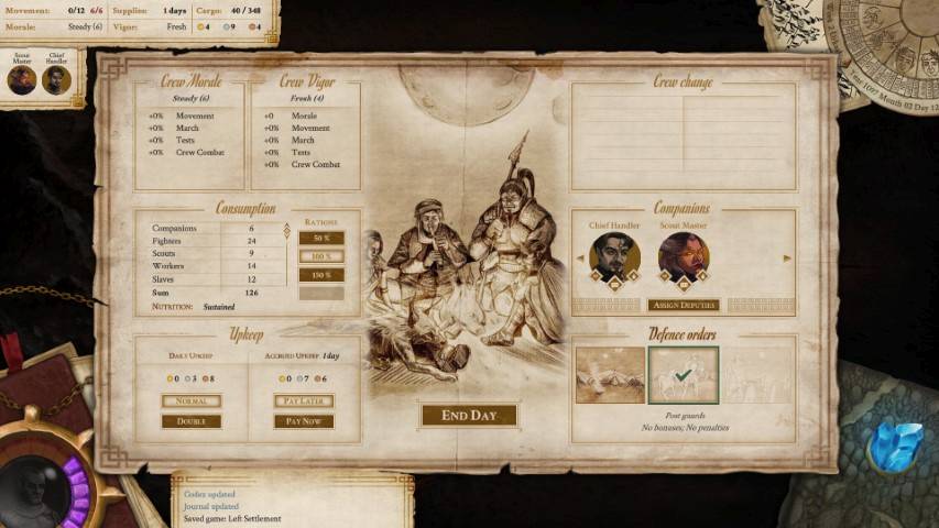 I viaggi devono essere pianificati e preparati con cura per evitare il disastro. Gestite efficacemente le vostre scorte, il morale e il vigore del vostro equipaggio per sopravvivere. Trasportate merci ed oggetti di valore in tutto il deserto o prendeteli da altri. Il vostro party di lavoratori, combattenti, scout e schiavi deve essere gestito bene per ottimizzare la loro efficacia.