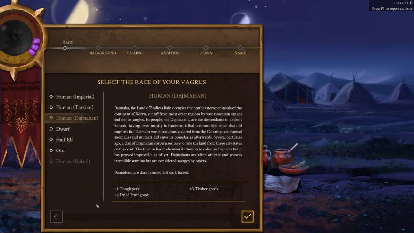 Noi siamo il Vagrus, ossia il capo della carovana che funziona da trasporto per le genti, un’attività commerciale, una brigata di guerrieri pronti a cercare grandi tesori e affrontare mortali pericoli. Che la nostra scelta sia caduta sul tutorial o sul gameplay immediato, un’importante decisione sarà quella di creare il nostro personaggio.