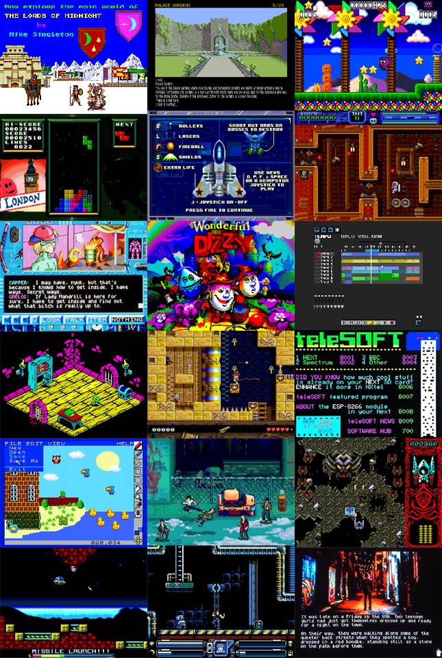 The Next può eseguire rapidamente tutte le gemme originali di cui abbiamo bei ricordi. Ma per quanto riguarda le nuovità per sfruttare appieno le capacità di Spectrum Next? Gli autori hanno pubblicato un’immagine che vale più di mille parole che vi abbiamo riportato ad inizio di questo paragrafo. Interessante, vero?