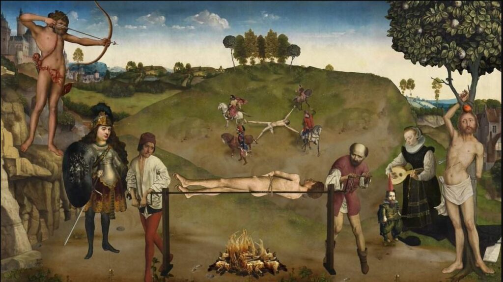 Creato dallo sviluppatore solista Joe Richardson, avente sede nel Regno Unito, The Procession To Calvary è un gioco di avventura che evoca l’umorismo surreale di Monty Python. Esso è interamente realizzato da centinaia di dipinti rinascimentali, con opere di famosi maestri come Rembrandt, Bosch e Michelangelo. Tutti faticosamente tagliati e incollati in un montaggio folle, fatto di immagini corroboranti.