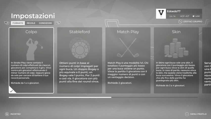 Non mancano, ovviamente, i tornei da svolgere e, grazie anche alle diverse opzioni, è possibile scegliere anche la durata delle competizioni: da un singolo giro (18 buche) fino a quattro (72) che solitamente i tornei professionistici hanno. In caso di più giri si attiveranno i tagli, ossia l’eventualità di essere eliminati se supera un determinato punteggio.