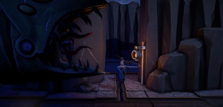 In pratica, tutta l’avventura sarà vissuta come se fossimo davvero dinanzi ad un giochino meccanico in cui l’utente avrà il controllo di un singolo eroe. Bartlow’s Dread Machine si comporterà sostanzialmente come un classico twin stick shooter (ovvero, il controllo del personaggio avverrà in larghissima misura con l’uso delle due levette): una scelta che si rivela azzeccata e organica, garantendo meccaniche fluide e che mai singhiozzano.