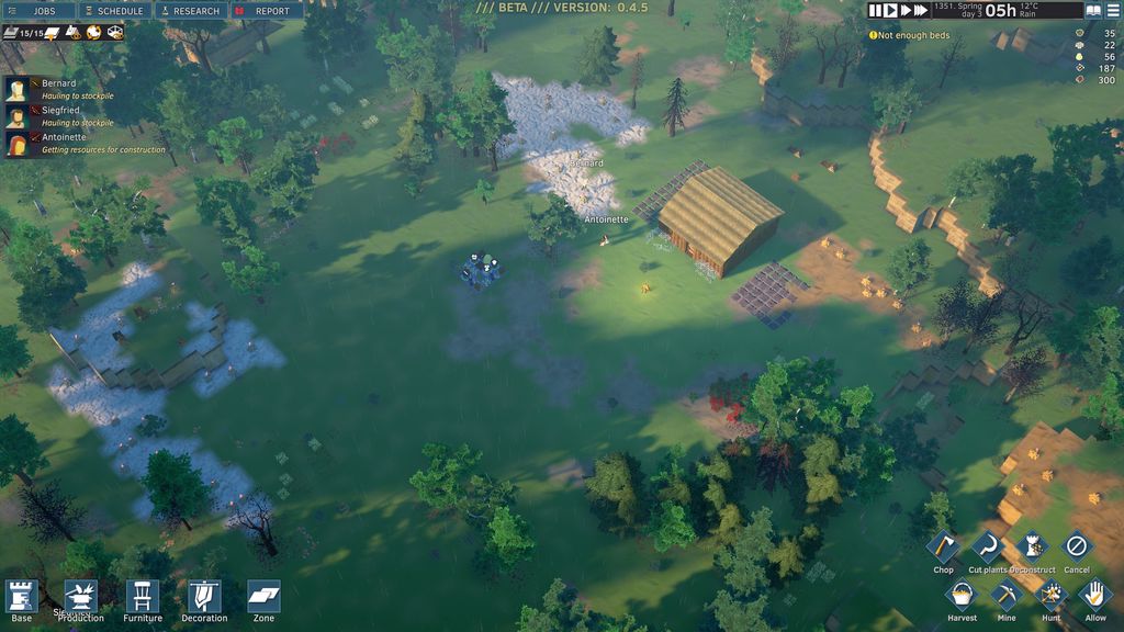 Questo fino all’arrivo (o meglio, il ritorno) di tre coloni coraggiosi, vogliosi di ricominciare in una terra vergine, in cui la natura ha (ri)preso il sopravvento. Per iniziare dovremo scegliere il nome dell’insediamento, realizzare/personalizzare il nostro stemma araldico e scegliere modalità e caratteristiche della mappa. La closed beta ha a disposizione solamente una mappa, “valley”, a dimensioni predefinite. A livello di modalità è invece possibile scegliere tra la standard e la builder. Dove la seconda si concentra sulla possibilità di dar sfogo alle proprie voluttà architettoniche, senza badare ai tanti aspetti simulativi propri di un gestionale.