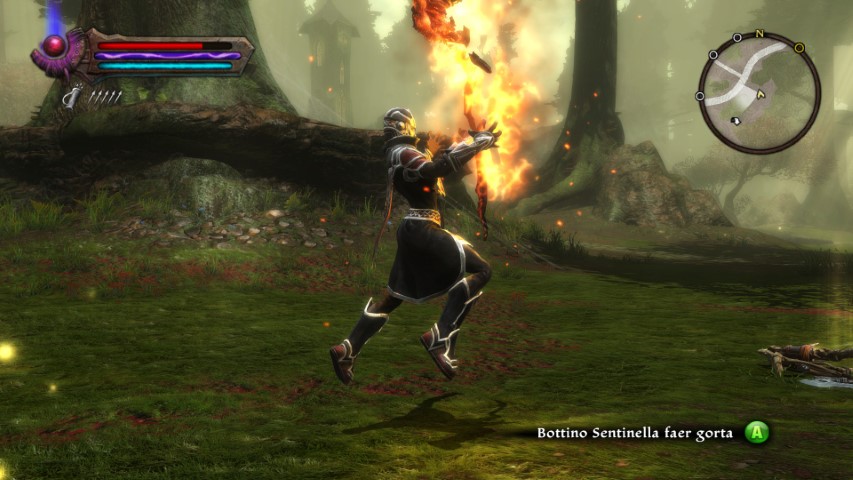 Come se i precedenti due punti non fossero sufficienti, il terzo ed ultimo pregio sostanziale di Kingdoms of Amalur: Reckoning è il sistema di combattimento. Nel lontano 2012 si diceva “World of WarCraft fa l’amore con God of War”. Quest’anno torniamo a ribadire il concetto, affermando ai più giovani tra i nostri lettori che quando si combatte in questo gioco si rievocano i fasti della trilogia di God of War e Fable. Qualcuno ricorda World of WarCraft per merito della saturazione dei colori molto elevata ed altri richiamano Devil May Cry, per dinamismo e velocità d’esecuzione. Alla fine dei combattimenti si innescano rapidi quick-time events che accompagnano i colpi di grazia del nostro alter-ego ai danni dei mostri più temibili (proprio come in God of War).