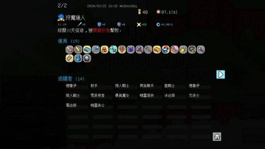Progettato, programmato, disegnato e composto interamente da LYM, a LW.C, Fantasy of Expedition è un gioco d’avventura di strategia roguelike sul guidare una squadra di guerrieri e sacerdoti in una spedizione incaricata dai Cieli di liberare la terra dai demoni.