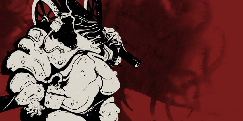 Stavano cambiando in corso d’opera, mentre stavamo provando stili diversi. Quindi in questo momento è un misto di fumettisti come Mike Mignola, Sergio Toppi e Tsutomu Nihei, e rappresentazioni più classiche dell’inferno sotto forma di xilografie. C’è anche un po’ di Giger lanciato lì per una buona misura.