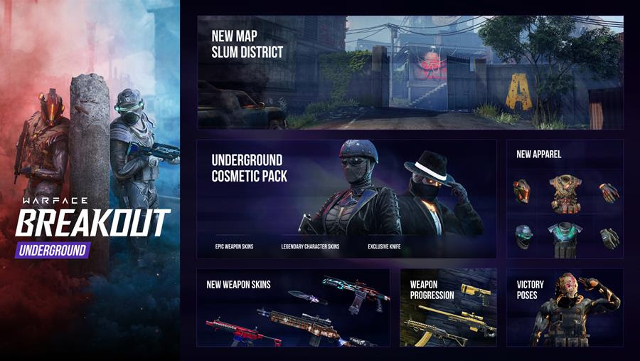 Underground, la seconda stagione dello sparatutto tattico per console Warface: Breakout, è disponibile ora come aggiornamento gratuito su Xbox One e PlayStation 4, come annunciato dallo sviluppatore Allods Team. Underground aggiunge un nuovo mappa, ricompense stagionali, una miriade di nuove meccaniche, modifiche alla qualità della vita e persino il crossplay ( aggiunta in seguito durante la stagione).