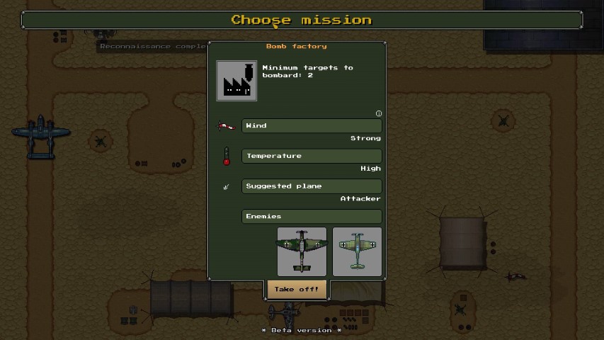 Il gioco si divide in due fasi distinte e collegate. La prima è quella relativa alla gestione del nostro campo d’aviazione, la seconda saranno le missioni dove invieremo le squadriglie di velivoli a nostra disposizione. Il tutto, a creare un connubio da “one more turn” che ci ha ricordato i migliori prodotti rilasciati dalla giapponese Kairosoft, ossia l’invidiabile qualità di garantire assuefazione continua.