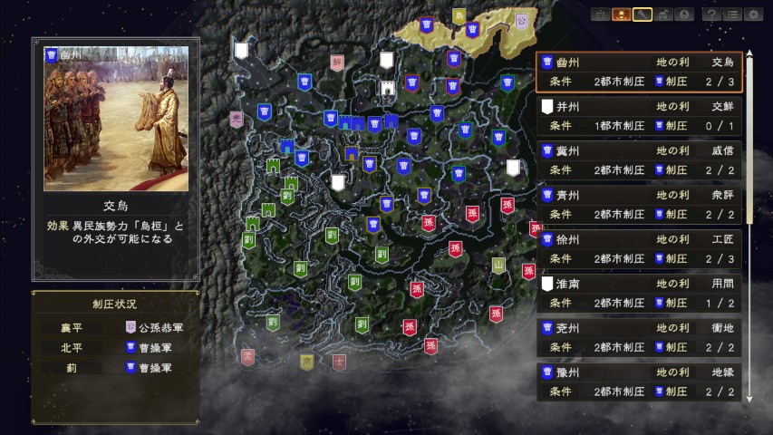 In Romance of The Three Kingdoms XIV: Diplomacy and Strategy Expansion Pack, i giocatori sono in grado di acquisire vantaggi geografici dopo aver conquistato un certo numero di città all’interno di una provincia, con ogni provincia che vanta i propri vantaggi unici per aiutare e invertire le sorti in battaglia. Ad esempio: la conquista della provincia di Qing garantisce l’abilità High Reputation, espandendo il raggio di conquista automatica, mentre la conquista della provincia di Jing meridionale aumenta la probabilità di reclutare ufficiali liberi o prigionieri con il vantaggio del Rhetorician.