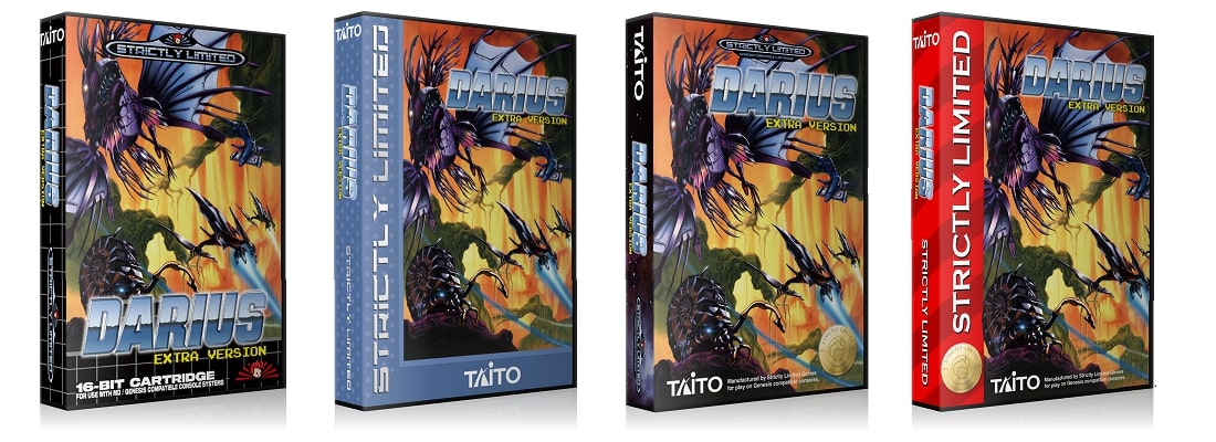 Questa versione delizierà i possessori del sistema Mega Drive/Genesis. La cartuccia conterrà una nuovissima versione del gioco arcade originale realizzata per la classica console Mega Drive che non è mai stata rilasciata prima. Questa nuovissima conversione dell’originale arcade include nuove modalità esclusive, musica FM/effetti sonori migliorati e correzioni di gioco bilanciate, rendendola la migliore esperienza di Darius mai realizzata per le console retrò. Le edizioni per Mega Drive e Genesis sono limitate a 2.000 copie ciascuna in tutto il mondo, a 49,99 euro.