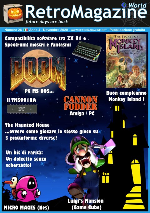 In questo numero mensile di novembre 2020, uscito giusto in tempo per Halloween, possiamo trovare 60 pagine di contenuti dedicati al mondo retro con recensioni, speciali, approfondimenti ed alcuni pezzi dedicati proprio alla festività di Halloween. Giusto ricordare come la fanzine abbia festeggiato recentemente i 100.000 download.