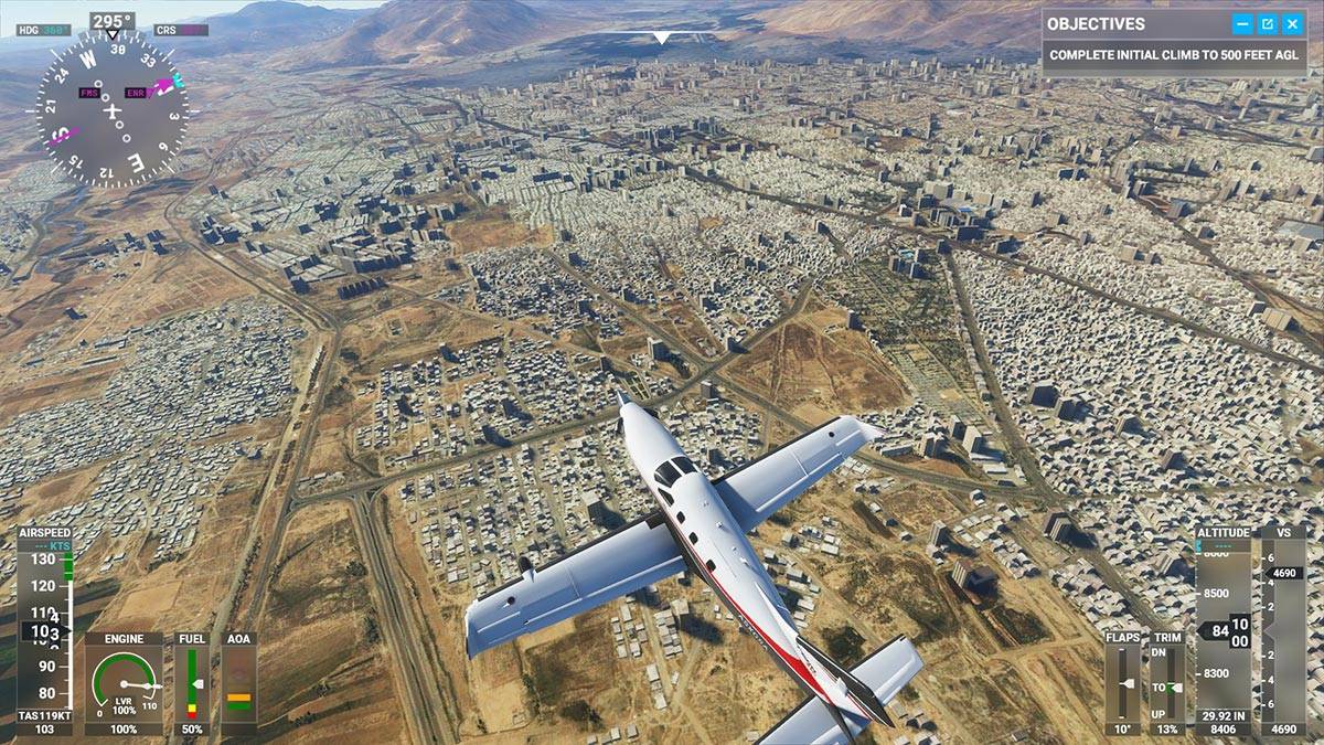 Ad ogni modo, una volta in cabina, l’appassionato è chiamato a eseguire tutti i movimenti di decollo, crociera, discesa e, in ultimo, atterraggio tipici di un aereo, sia esso un semplice velivolo da turismo che un grosso Boeing 747-8 Intercontinental. I voli, volendo, possono tra l’altro richiedere ore, come nel mondo reale, e sono condizionati lungo il loro tragitto dalle condizioni meteo o da possibili complicazioni tecniche. Dentro l’abitacolo ogni pulsante, bottone o leva è utilizzabile per pilotare l’aereo in condizioni di completa simulazione, quindi anche in caso di “problemi”. Il resto del tempo lo si trascorre semplicemente godendosi il viaggio, ammirando le coste, le isole, i mari o le città sorvolate, mentre con un occhio si completa diligentemente il piano di volo.