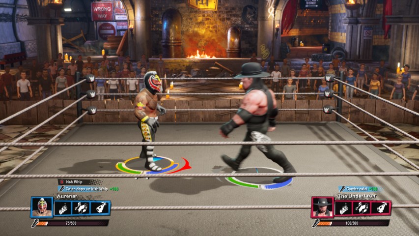 Joypad alla mano è tutto piuttosto intuitivo. Colpi rapidi, colpi pesanti, prese, parate, parate d’impatto: tutto è sempre a portata e facile da eseguire o concatenare. Non manca l’interazione ambientale, l’arrampicarsi agli angoli o sulle corde, scalare le reti di protezione di alcune arene o raccogliere le sedie da spaccare sulla schiena degli avversari. Tutto, sempre, alla massima fluidità.