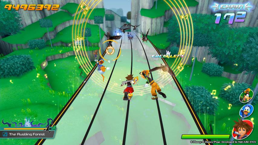 In Kingdom Hearts Melody of Memory i giocatori rivivranno i loro momenti preferiti della serie in un’avventura in compagnia di Sora, Paperino, Pippo e altri personaggi familiari di Kingdom Hearts. Durante l’esplorazione di iconici mondi Disney, i giocatori uniranno le forze con quelle di popolari personaggi Disney. I brani da padroneggiare saranno oltre 140, tra cui gli amati “Destiny Islands”, “Hand in Hand” e “Working Together” di Yoko Shimomura, più brani classici tratti dall’universo cinematografico Disney.